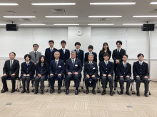 高校生のeスポーツ日本一を決める「STAGE:0 eSPORTS High-School Championship 2025」の「リーグオブレジェンド」部門で全国優勝を果たした、クラーク記念国際高校CLARK NEXT Tokyo(板橋区板橋4)の生徒と全国大会に出場した生徒が11月18日、板橋区役所を表敬訪問し、区長らに優勝報告を行った。