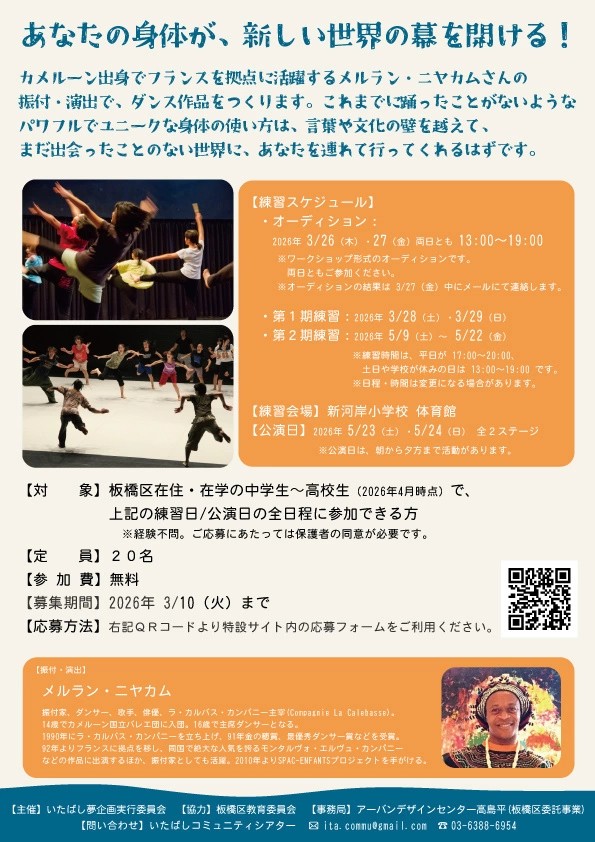 板橋区の芸術文化活動の一層の振興を図るため、子ども向け演劇・ダンスの劇団「いたばしコミュニティシアター」と、児童合唱団「いたばしキッズシンガーズ」の旗揚げ公演が5月23日・24日、旧高島第七小学校中庭(板橋区高島平3)で行われる。
