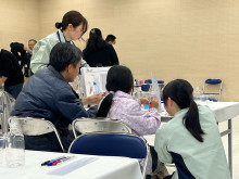 「ITABASHIQUALITY」展示企業の一社であるチノーは、ペットボトルとストローでオリジナル温度計を作るワークショップを開催。これまで年1回、高島平図書館(高島平3)で夏休みに子ども向けのワークショップを開いていたが、同イベントへの参加は今回が初めて。東京大学宇宙線研究所のワークショップに参加した親子は、居住する和光市にある理化学研究所一般公開で今回のイベントを知り、さまざまなワークショップがあることと「板橋にある旧理化学研究所も見てみたい」という思いもあって来場したという。