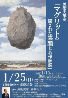 美術史家の森耕治さんによる美術史講座「マグリットの隠された素顔と名作解説」が1月25日、成増図書館(板橋区成増3)併設の成増アートギャラリーで行われた。
