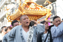 板橋区を拠点に活動する「神輿JAPAN(みこしジャパン)」が9月30日、大阪・関西万博で開催される「世界平和祈念祭 平和式典」で、同団体が保有するみこしを披露するため、本拠地の大谷口北町を出発した。