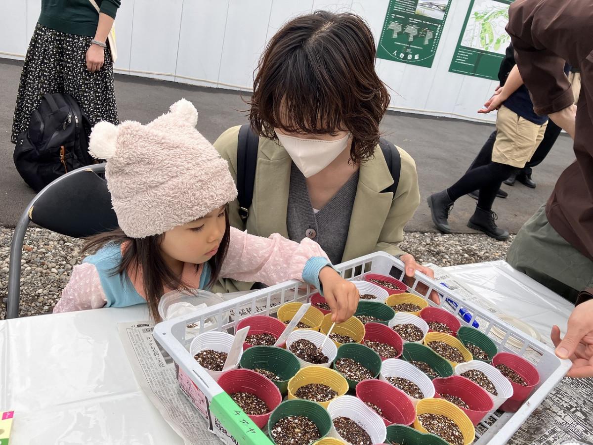 種植えと絵本読み聞かせのイベント「7のひろばにタネを植えよう」が3月28日、上板橋南口再開発区域「7のひろば」(板橋区上板橋2)で行われた。