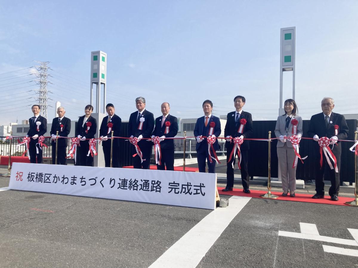 荒川堤防と新河岸陸上競技場(板橋区新河岸3)をつなぐ 連絡通路「ITTA RIVER PARK BRIDGE(イッタ・リバーパーク・ブリッジ)」が完成し、3月30日に完成式典が行われた。