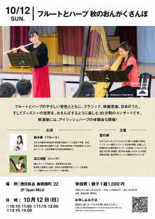 「フルートとハープ秋のおんがくさんぽ」とアイリッシュハープ体験会が10月12日、「無印良品 板橋南町22」(板橋区南町)で開催される。