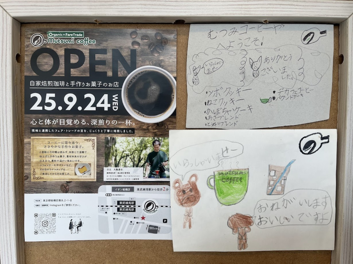 オーガニックとフェアトレードに特化した自家焙煎(ばいせん)コーヒーと手作り菓子を販売する「mutsumi coffee(ムツミコーヒー)」(板橋区徳丸2)が9月24日、東武東上線東武練馬駅南口から徒歩2分の場所にオープンした。