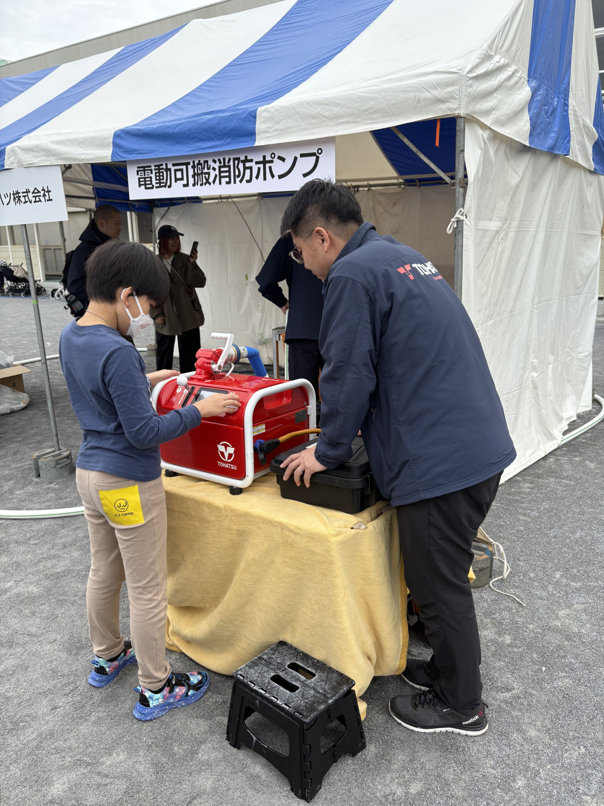 2025年度グッドデザイン賞を受賞したモデルの電動ポンプ用いて、操作と放水が体験できる