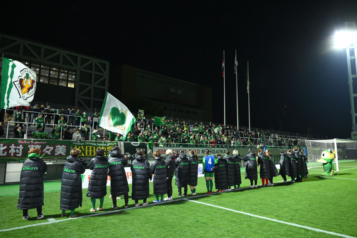 勝ち点3を積み上げ暫定首位に立ったベレーザ選手を拍手で迎えるゴール裏のサポーター(写真提供=WEリーグ)