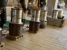 板橋・金沢小で餅つき大会 5つの臼で1000人分