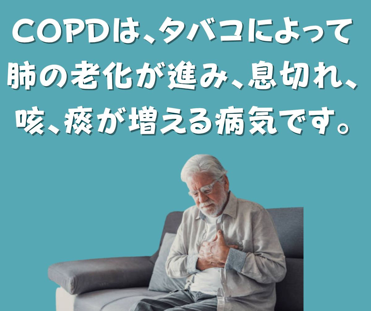 COPDは、たばこによって肺の老化が進み、息切れ、咳、痰が増える病気です。
